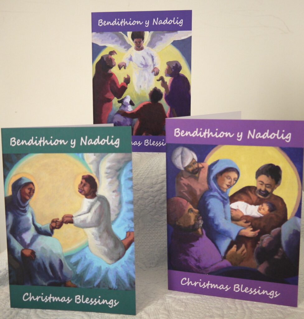 New Christian Christmas cards, developed from paintings of the Nativity. Including a Bible reading on the back, in Welsh and English.