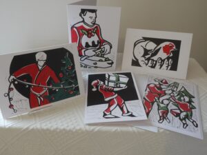 A range of Seasonal Cards, developed from lino cuts.